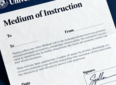 A Medium of Instruction (MOI) certificate is an official document issued by an educational institution that confirms the language in which a student completed their degree education, often used as an alternative to English proficiency tests for study abroad or employment purposes